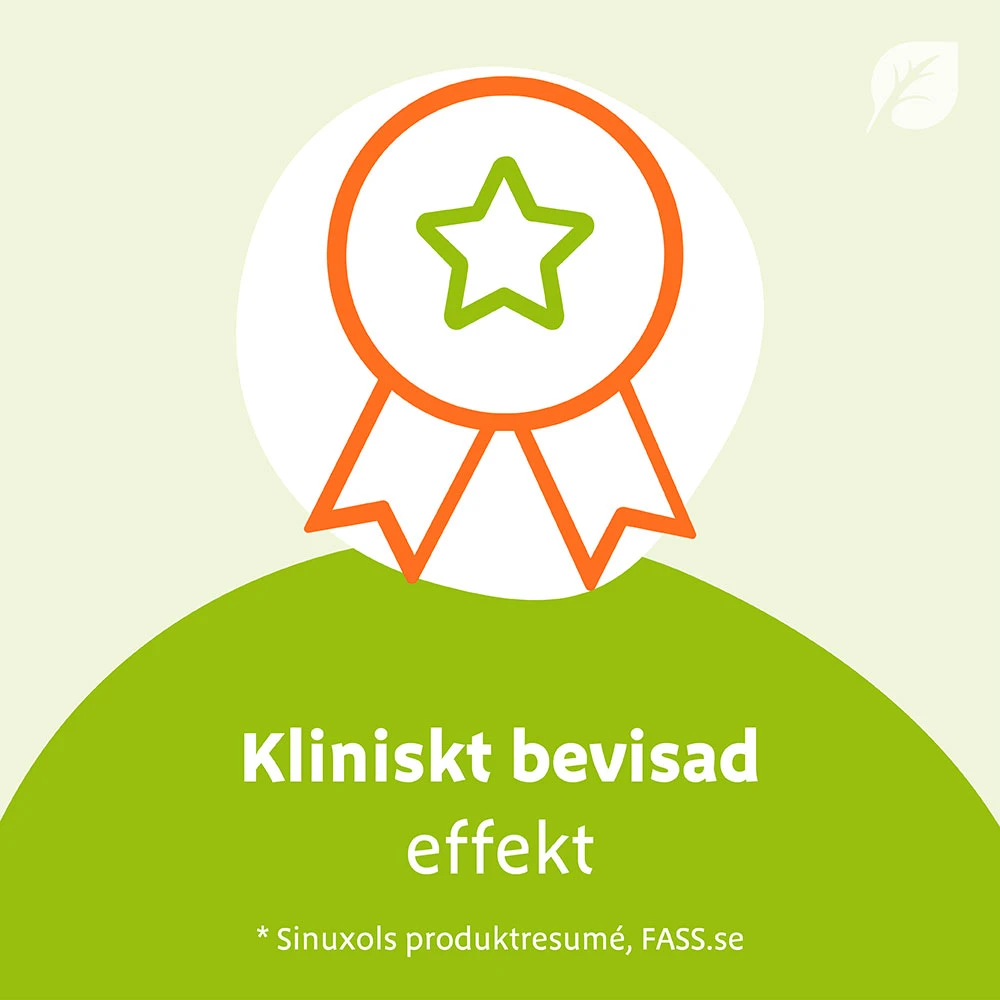Efter en veckas behandling med Sinuxol för symtomet ”tryckande huvudvärk” syntes ett tydligt förbättringsförsprång på nästan två dagar jämfört med placebo (ett verkningslöst läkemedel). Det betyder att patienterna kände sig bättre nästan två dagar tidigare. Sinuxol kan med fördel användas tillsammans med avsvällande nässprayer, som ett kortvarigt, kompletterande läkemedel vid behov. Rådgör med din läkare om symtomen kvarstår efter 7-14 dagar.