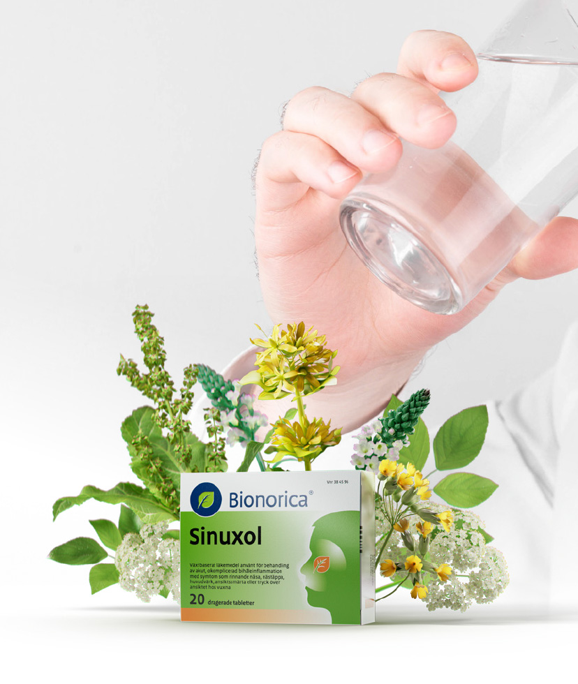Sinuxol är ett växtbaserat läkemedel för behandling av bihåleinflammation med snuva. Det kan användas av vuxna från 18 år och innehåller en unik kombination av fem olika medicinalväxter. Sinuxol är dragerade tabletter, som gör de lätta att svälja. Sinuxol lindrar symtomen två dagar tidigare än utan behandling.